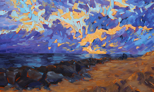 Portraits are a personal and reflective expression of what I see in people. I paint people I love. The process of arranging brushstrokes to form a face reveals a personality and a relationship. pWhen I photograph people, it often involves walking together and exploring paces with new eyes, and elevating my subject with them. When I capture the way light falls on someone, it is both an exercise of composition and a thoughtful exposing of the way I see them. These landscapes are mountains I climbed, waters I looked into, and skies that opened above me. In each of these repainted memories, someone was close to me. Through landscape, I memorialize moments with people - dear friends on a beach at dawn, the wonder of exploration, and places made for dreaming.