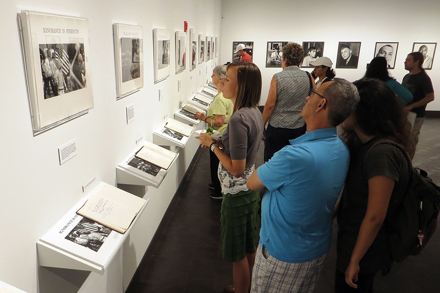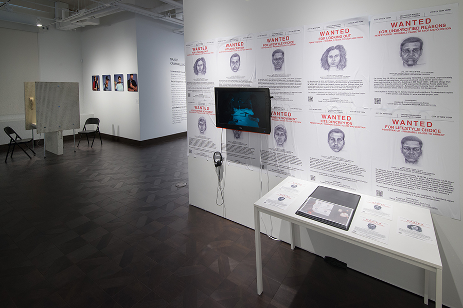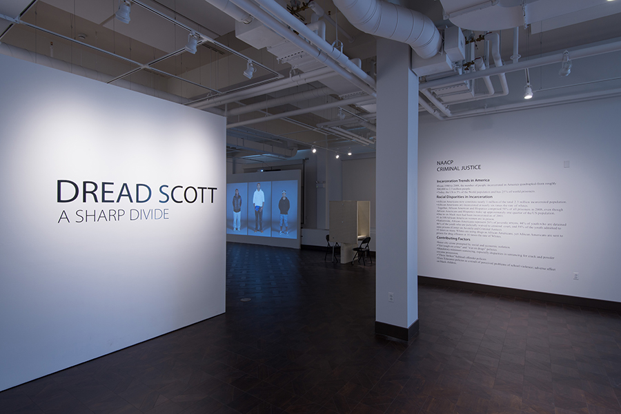 A Sharp Divide was a survey of Dread Scott’s public engagement, performance, and multi media based work completed from 1987 – 2014 that tackle the racial and cultural disparities that exist within our criminal justice system such as: the criminalization of youth, profiling and discrimination, the school to prison pipeline, stop and frisk tactics, and other civil rights issues. The selected works were presented in the gallery as video, photography, recordings, and audience interactions.