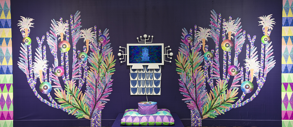 The world of the Empathics emerged from the artist's investigations and interest in anthropology, science fiction, folklore, mythology, and Afrofuturism. Drawing upon her own experience as a Black, Asian, and white American she explores ideation of cultural hybridity as a pathway toward an equitable society. Woolfalk’s vision of social evolution is attainable by adopting a culture that is in a continuous state of transformation and growth. Utilizing the tradition of folkloric storytelling, Woolfalk creates narratives that manifest these aspirations.