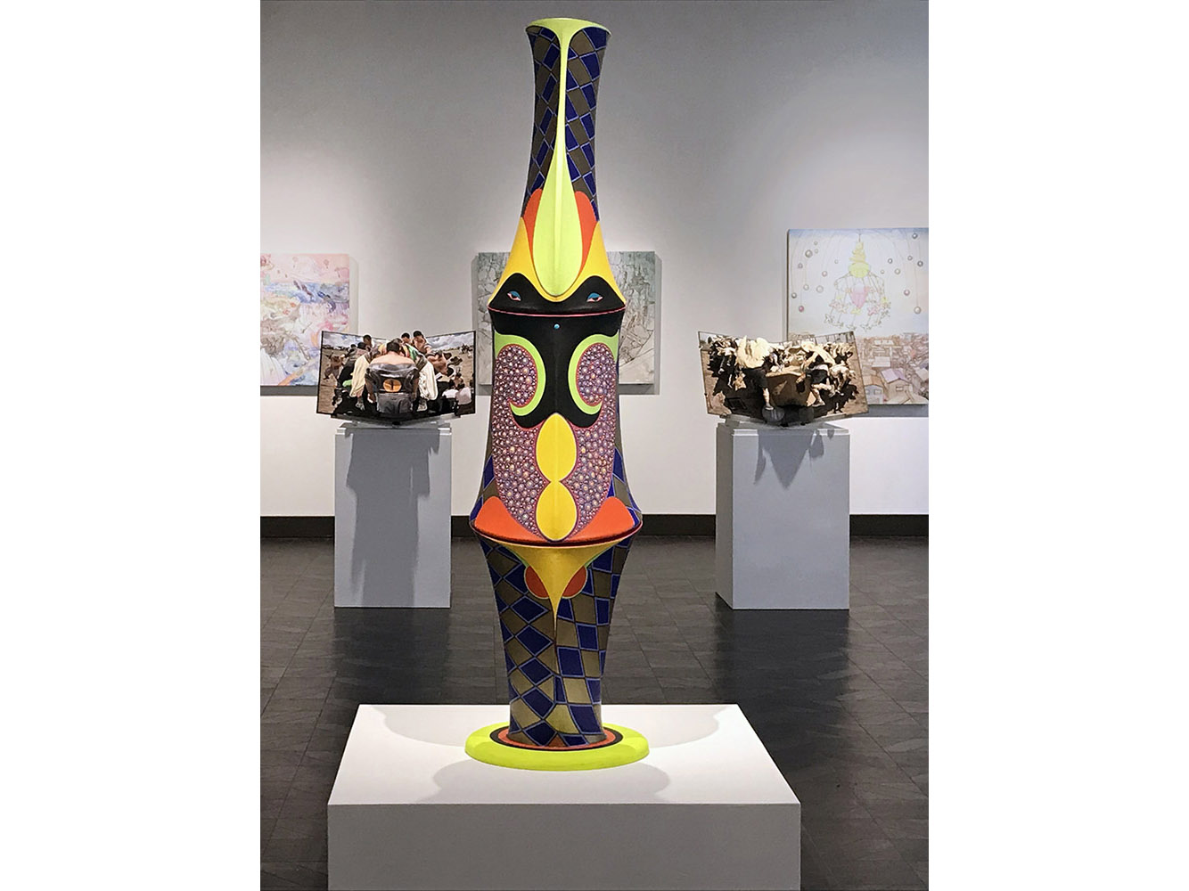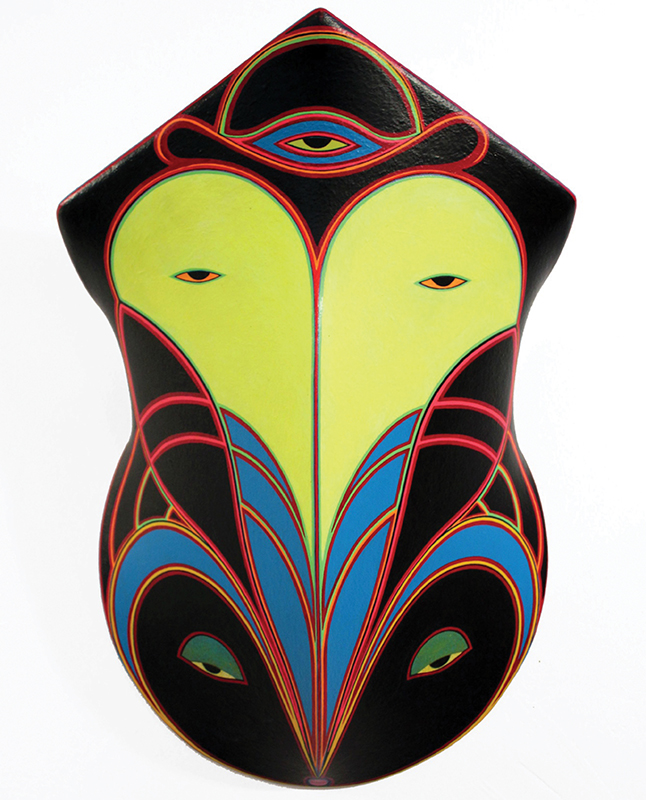 Claes Gabriel, who will be exhibiting at RUAG this spring, creates vibrant 3D paintings that are the source of inspiration for the Power Masks project. A key goal of the program is to bring an artist directly into the classroom setting. The resulting artwork by Clearview Regional High School students will be on view at the Gallery from April 15–22.
