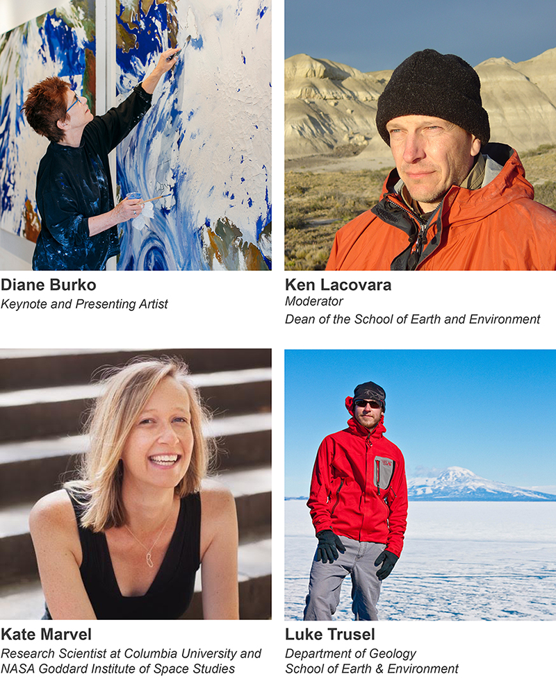 In conjunction with the exhibition Vast and Vanishing at Rowan University Art Gallery, artist Diane Burko presents her work that intersects art and science around the issue of climate change. This presentation will be followed by a panel discussion moderated by Dr. Kenneth Lacovara, Dean of the School of Earth & Environment along with Dr. Luke Trusel, Assistant Professor in the Department of Geology, and Dr. Kate Marvel, Research Scientist at Columbia University and NASA Goddard Institute of Space Studies. Following the discussion there will be a reception in Eynon Ballroom with light refreshments.