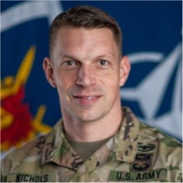 Lt. Col. Nichols was then selected for the School of Advanced Military Studies (SAMS), where he earned an MA in Military Operations before moving on to the G5 Strategic Planning staff of Gen. Cavoli at U.S. Army Europe-Africa in Wiesbaden, Germany. From this assignment, Lt. Col. Nichols was personally selected to serve on the staff of German Lt. Gen. von Sandrart at NATO Multinational Corps Northeast in Szczecin, Poland. In this postion, Lt. Col. Nichols helped coordinate NATO land force response to the Russian invasion of Ukraine in 2022.