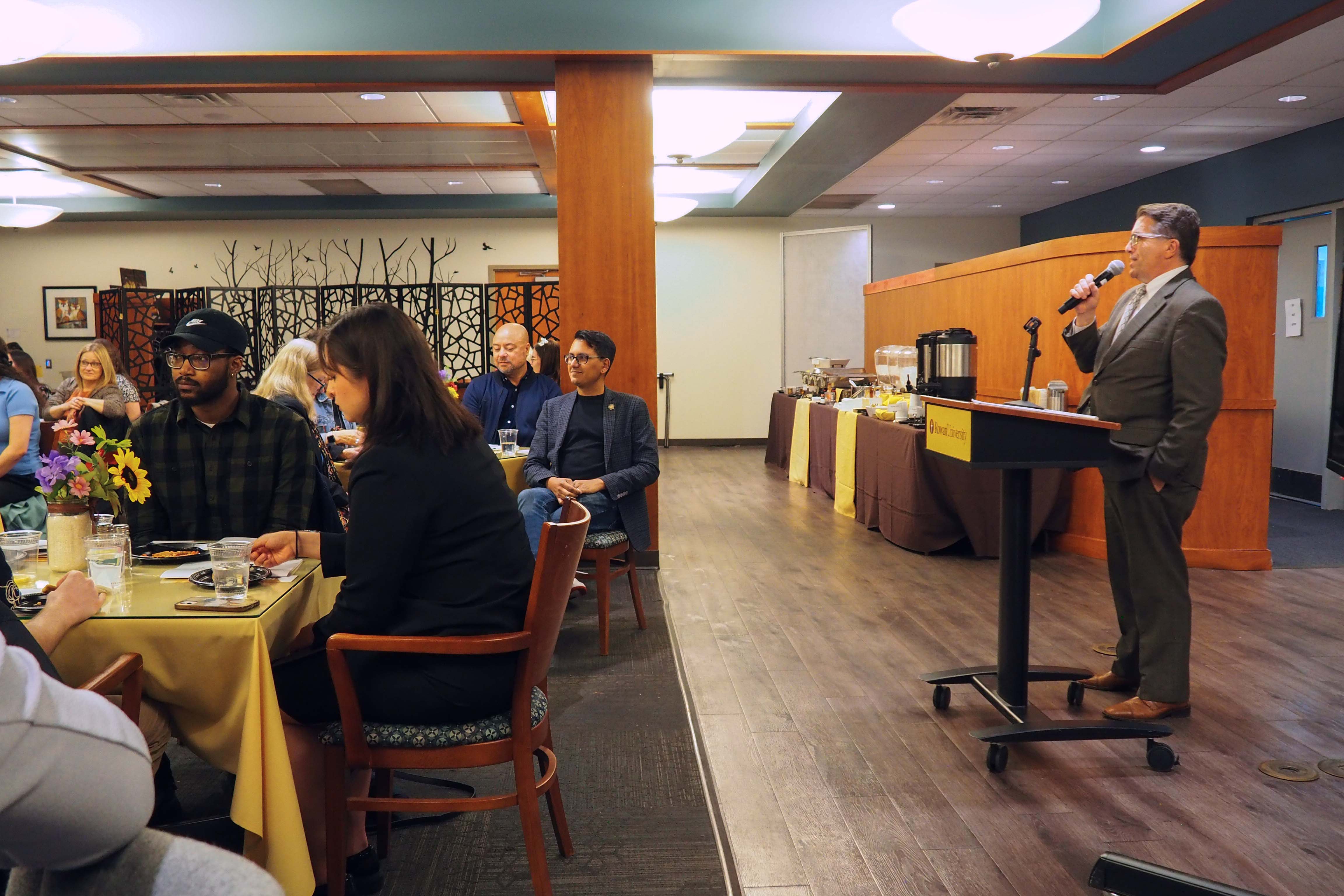 On April 5, 2024, the Department of History hosted its annual Senior Recognition Banquet and Honors Society Induction. Hosted at the Owl's Nest on campus, family and friends joined the faculty in honoring our students. Congratulations to all who attended and received recognition for their achievements! Thanks to alum Sean Fischer for his insightful talk on "Studying the Past, Preparing for the Future.
