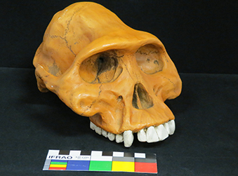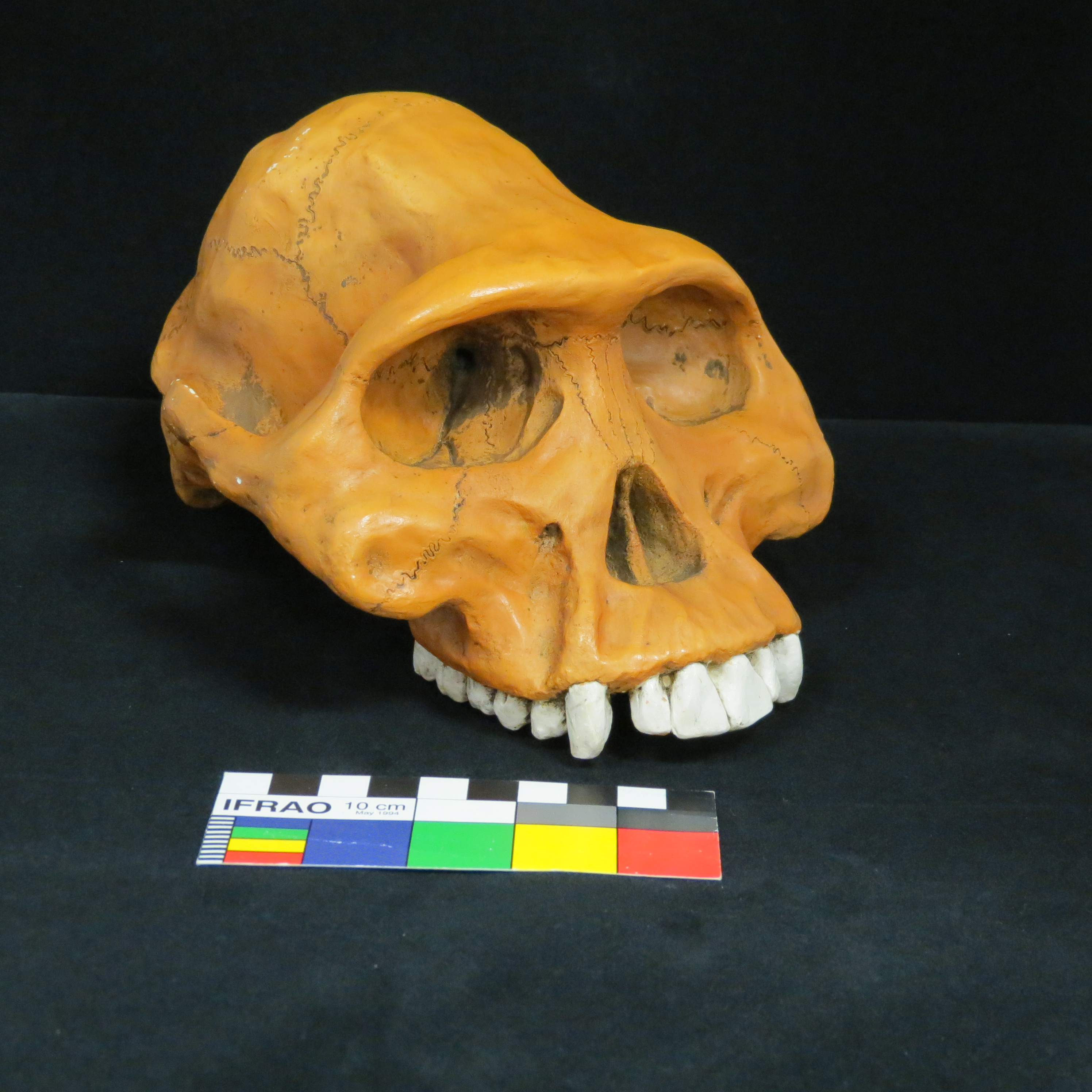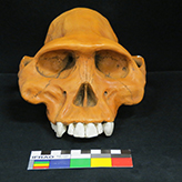 Afarensis most likely lived in small social groups that occupied a range of environments including savannah, sparse woodlands and dense forests. Fossil bones bearing cut marks indicate this species most likely used simple tools made of sticks and other plant materials and non-modified stones. Their diet included mostly fruits and leaves, but they may have included significant amounts of meat. A. afarensis featured an apelike face was with a sloping forehead, prominent brow ridges above the eyes, flat nose, strongly projected lower jaw and a braincase approximately 1/3 the size of the modern human brain. Their long arms featured curved fingers adapted for climbing trees. This species is the oldest documented bipedal species adapted to live on land and in the trees and their ape and human characteristics aided in their survival as climates and environments changed.