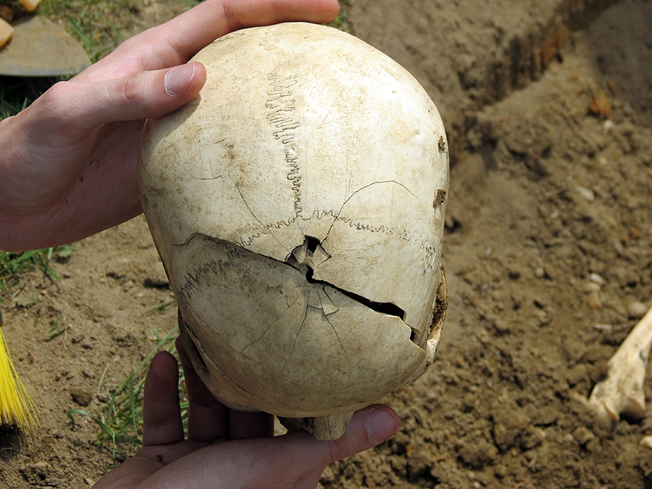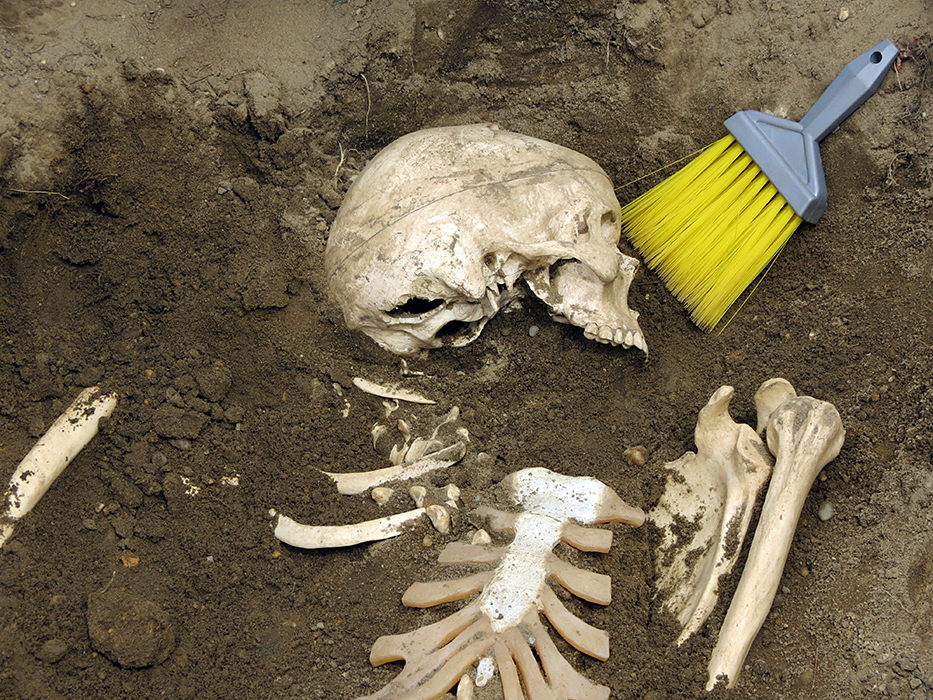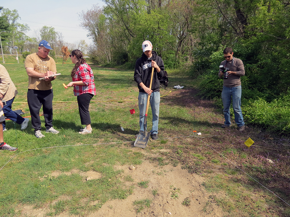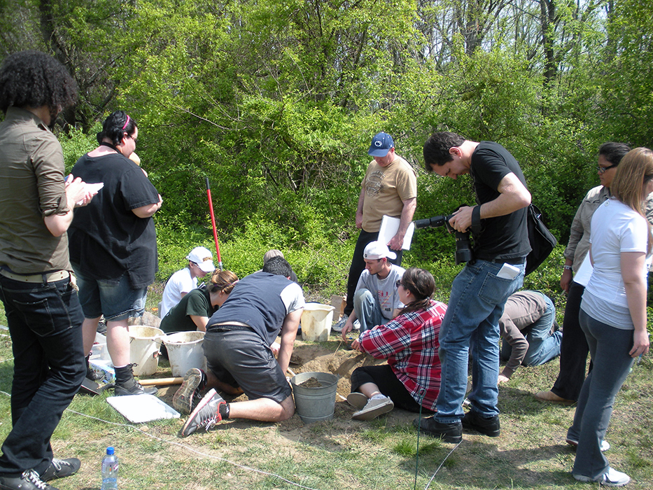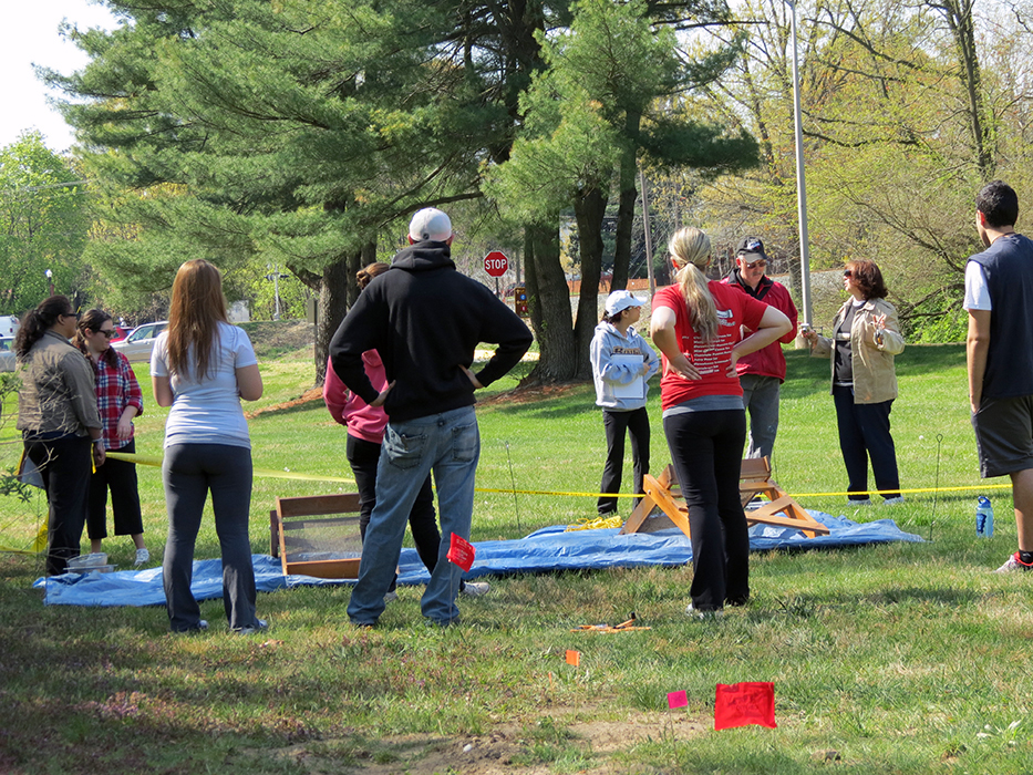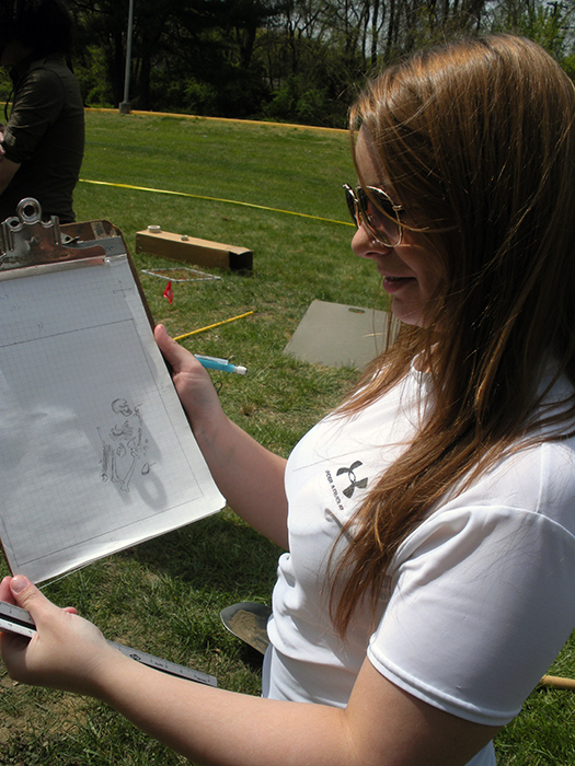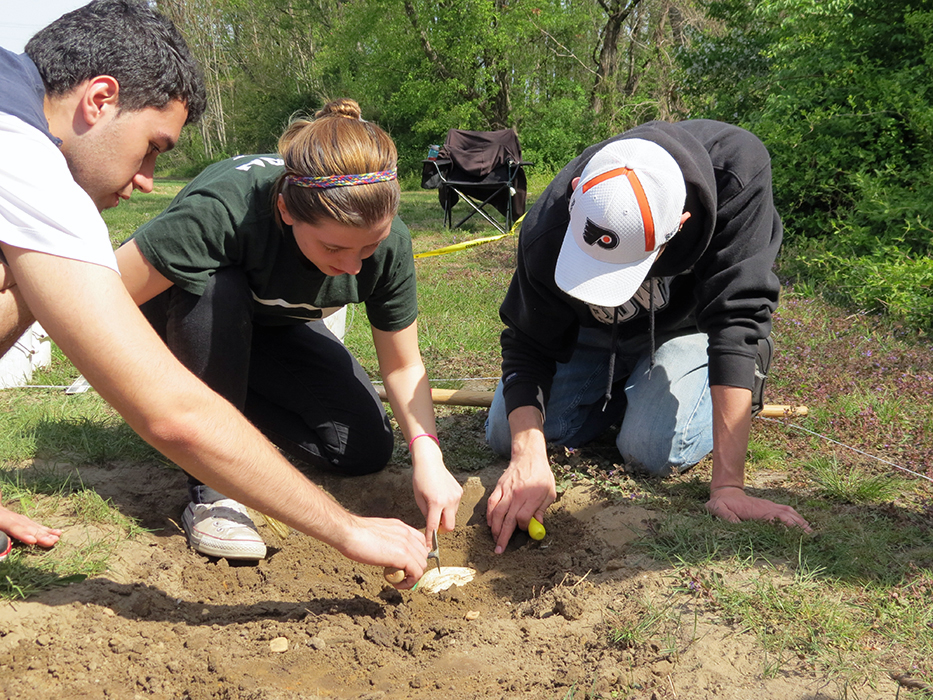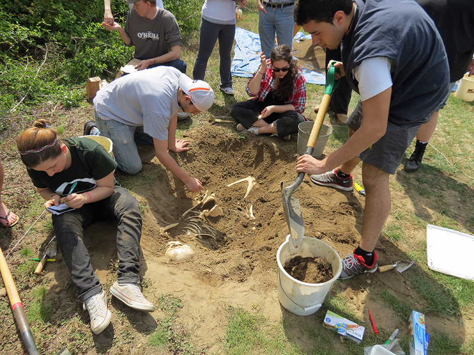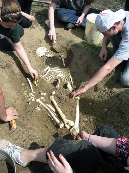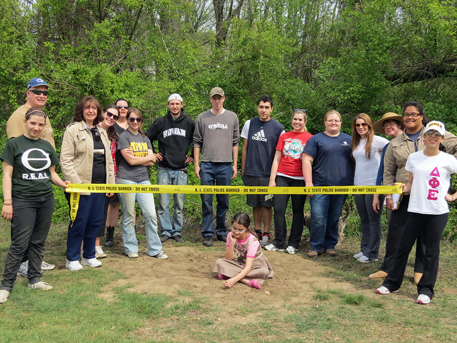 Participants in Rowan's Forensic Anthropology Class investigate a clandestine burial as part of their final class project. The excavation, recovery and analysis of this burial permits the students to put their knowledge of human skeletal anatomy and deductive methods to the test in order to determine the age, sex, and population affiliation of the "deceased" as well as the cause and manner of the person's death.